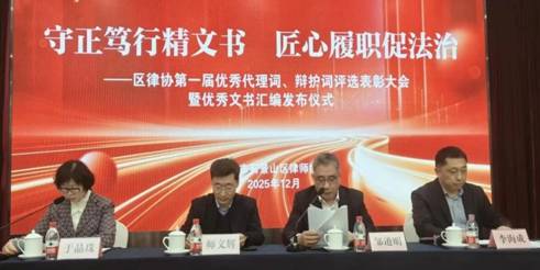 颁奖现场,参会领导为李春荣主任等获奖者逐一颁发荣誉证书。随后,区律协相关负责人正式发布优秀文书汇编,李春荣主任的获奖文书成功入选。据悉,该汇编由区司法局副局长师文辉作序,集中展现了全区律师的精品文书成果,兼具示范与引领价值。