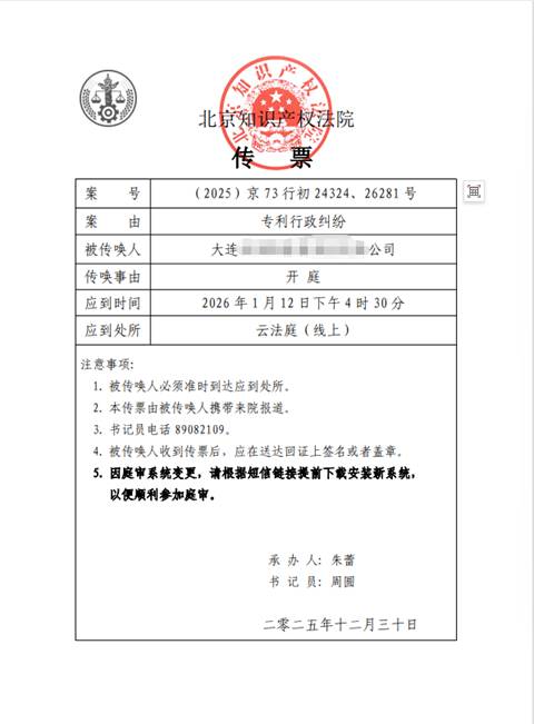 2026 年 1 月 12 日,北京知识产权法院将通过云法庭线上审理某家居企业诉国家知识产权局、第三人某智能家居企业专利无效行政纠纷案【案号:(2025) 京 73 行初 24324、26281 号】。北京鼎友律师事务所李春荣律师团队已接受该智能家居企业委托,将全程代理应诉,打响律所新年知识产权诉讼首战。